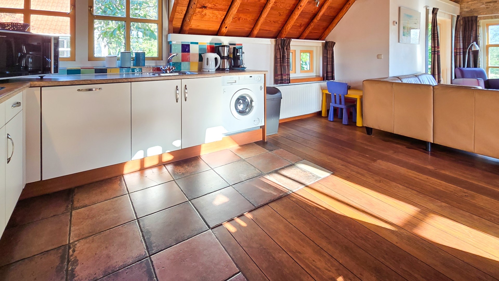 ‘Kaapsdune’ beschikt over een sfeervolle woonkamer met houtkachel, die naadloos overloopt in de open keuken voorzien van alle moderne gemakken. Aangrenzend aan de keuken bevindt zich een knusse eethoek om heerlijk te tafelen. Op de begane grond bevindt zich tevens een separaat toilet. De trap in de woonkamer biedt toegang tot zowel het souterrain als de knusse slaapzolder met berging. Het royale souterrain uitgerust met vloerverwarming beschikt over vier slaapkamers en een ruime badkamer met douche, wastafel, toilet en jacuzzi. Zowel aan de zuidwestzijde als aan de zuidoostzijde heeft de woning een entree, waarbij de zuidoostzijde is voorzien van een beschut aangelegd terras. Zowel van binnen als van buiten ademt ‘Kaapsdune’ de karakteristieke Terschellinger sfeer, met onder andere een robuuste houten vloer en een fraai zichtbare sporenkap. De woning biedt volop ruimte, is door de jaren heen keurig onderhouden en beschikt over energielabel E.