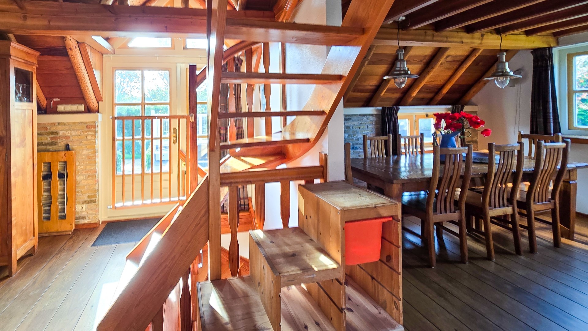 Middels de trapopgang in de woonkamer bereikt u een slaapzolder met afgesloten berging.