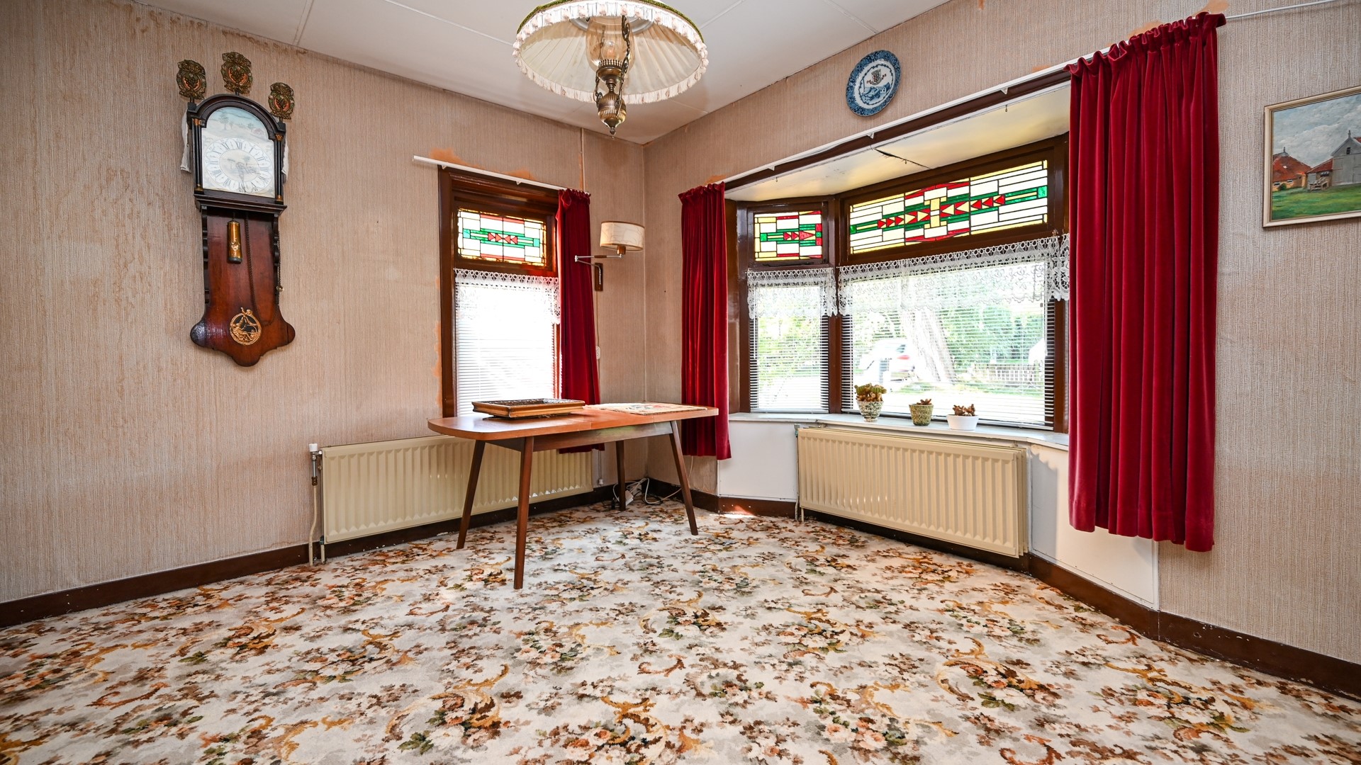 De woonboerderij ademt de sfeer van vroeger: de indeling en inrichting zijn nog grotendeels in oorspronkelijke staat en dateren uit de bouwperiode. Karakteristieke details, zoals de glas-in-loodramen in de voordeur en erker, geven het huis een charmante uitstraling. Dit pand is bij uitstek geschikt voor liefhebbers van authentieke woningen die graag zelf de handen uit de mouwen steken. Hier geen halfslachtige renovaties, maar een solide basis waarop u uw eigen woonwensen volledig kunt verwezenlijken.