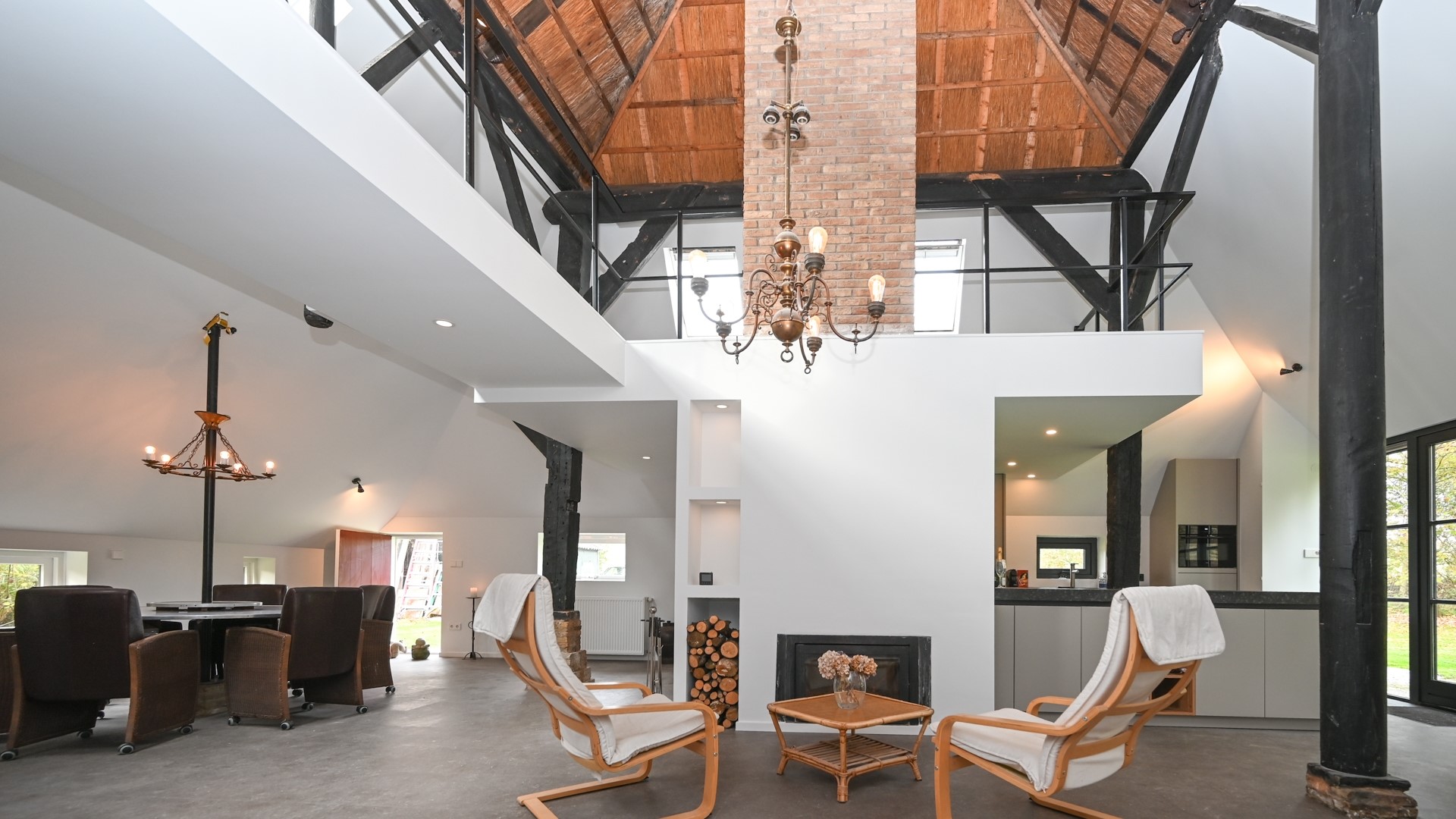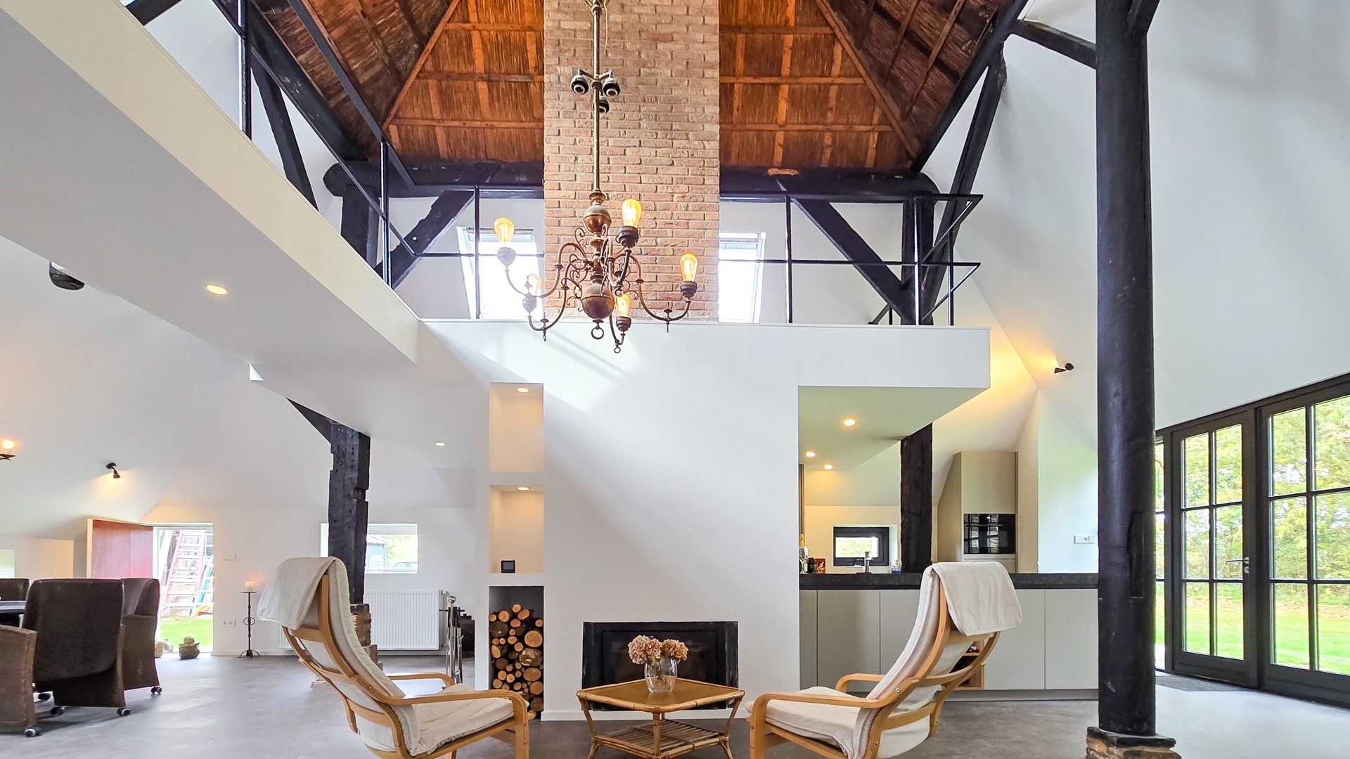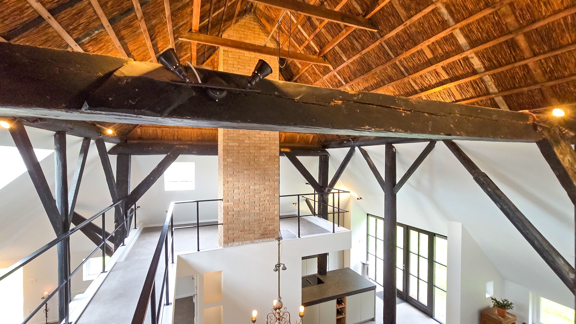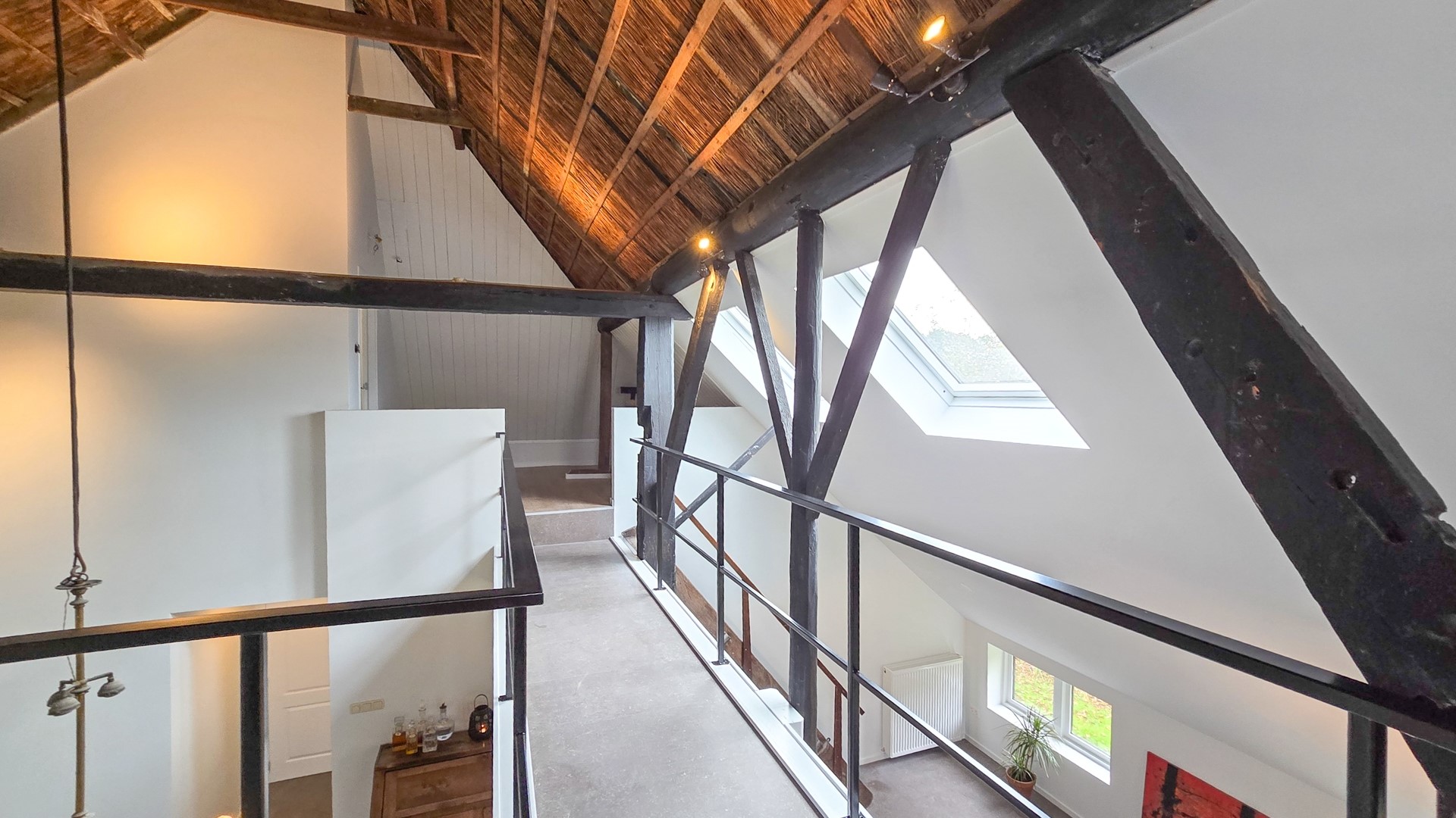 Het afgelopen jaar is de boerderij met veel zorg gemoderniseerd, waarbij de historische charme naadloos is gecombineerd met een eigentijdse afwerking. Hierbij is de kap goed geïsoleerd en gestuct, terwijl de karakteristieke rietconstructie in de nok van 8 meter hoog behouden bleef. De prachtige originele gebinten blijven zichtbaar en zorgen voor een warme, authentieke sfeer in het interieur.