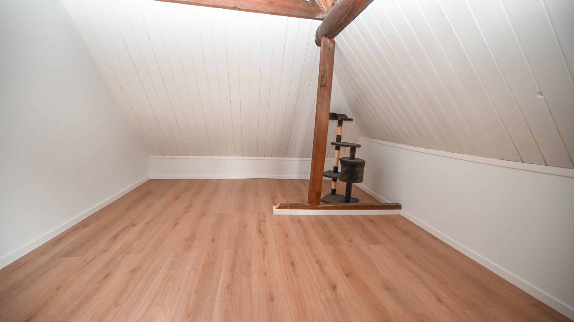 Op de verdieping zijn de derde slaapkamer en de overloop te vinden die voor meerdere doeleinden gebruikt kunnen worden. Daar vandaan leidt de loopbrug naar een 'darksky' vide aan de noordkant, met schitterend uitzicht over de duinen van de Noordzee en een oneindig aantal sterren in de nacht. De authentieke scheepstrap, die al vele jaren in de woning staat en naar de verdieping leidt, is subtiel intact gebleven en vormt een authentiek detail van het interieur.