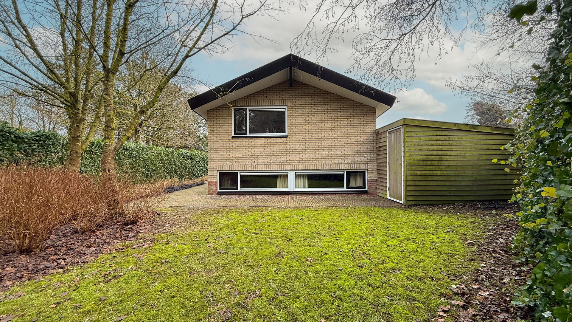 Ook buiten is aan alles gedacht. De tuin is professioneel aangelegd en biedt een verzorgde, groene en beschutte omgeving. Het royale terras ontvangt de hele dag zon en rondom de woning is voldoende tuin aanwezig. De woning beschikt over een eigen parkeerplaats op het perceel en de erfgrenzen zijn voorzien van een natuurlijke omheining met klimop, wat optimale privacy garandeert. Achter de woning bevindt zich een ruime achtertuin en hier is een praktische aangebouwde berging gerealiseerd, ideaal voor het stallen van meerdere fietsen en opslag.