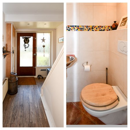 Via de entree komt u in de hal, die toegang biedt tot zowel de woonkamer als het toilet. Vanuit de woonkamer is de keuken bereikbaar, met aansluitend een praktische bijkeuken.